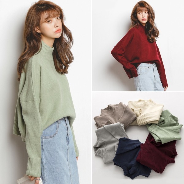| 商品名 | ゆるニット ハイネック 長袖 プルオーバー ニットセーター |