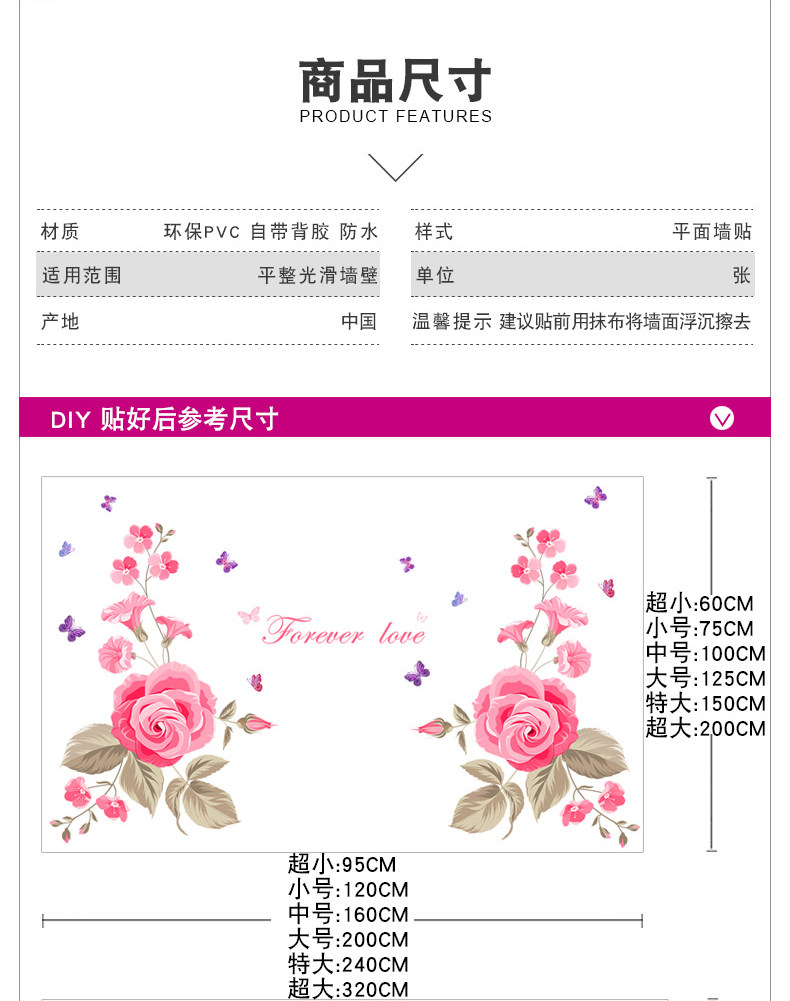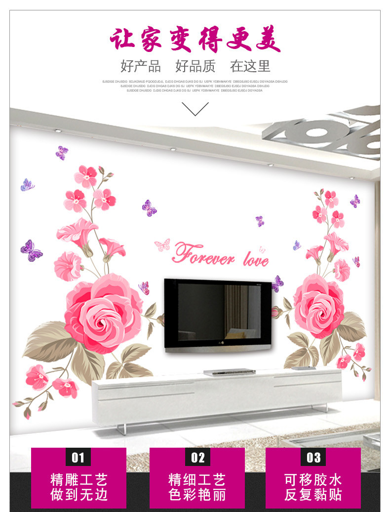 装饰贴花墙纸贴画客厅电视背景墙壁卧室可移除温馨墙贴纸房间