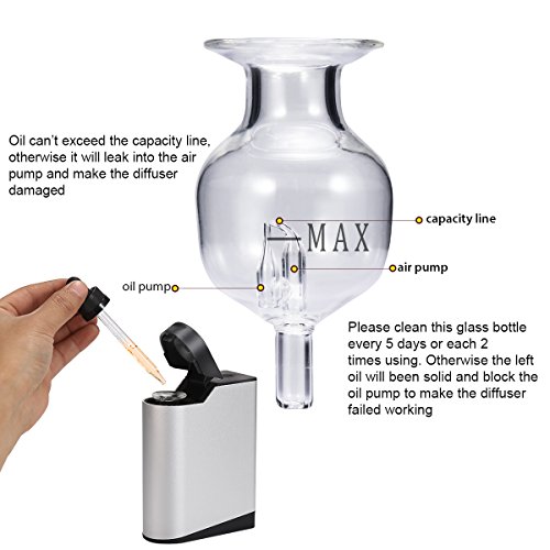 - ☛【SAFE &PROFESSIONAL】——Aluminum Alloy & Glass Material ,NO PLASTIC to leech toxic chemicals. Control or limit the amount of scent with Precision volume control and specially programmed shut off cycle. After only 15-20 minutes of running, with a durable energy efficient electric pump, it quickly fills an area of 320-430 sq. ft.