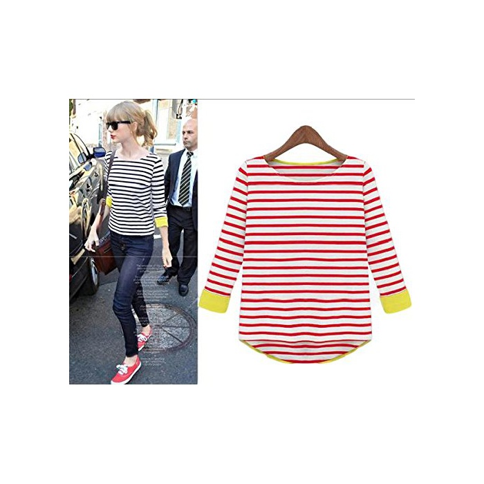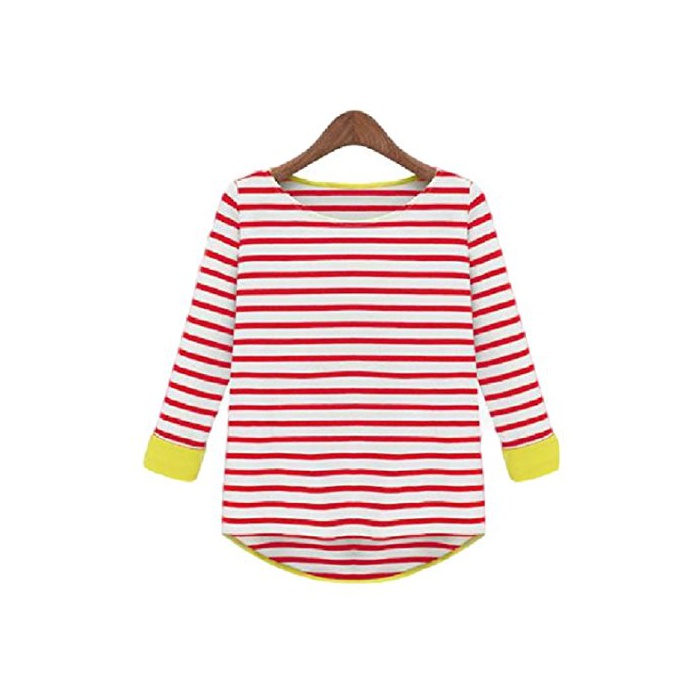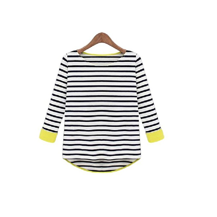 MY STAGE 레이디스 보더 T 셔츠 7 분소매 / 흑백적백 / M L XL XXL / (M,흑백)