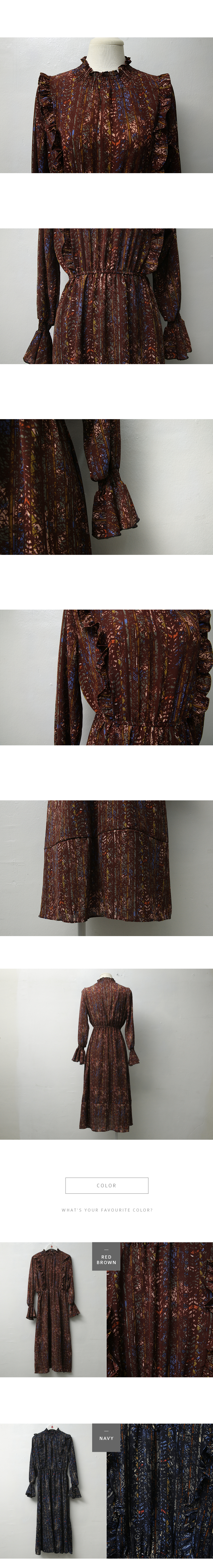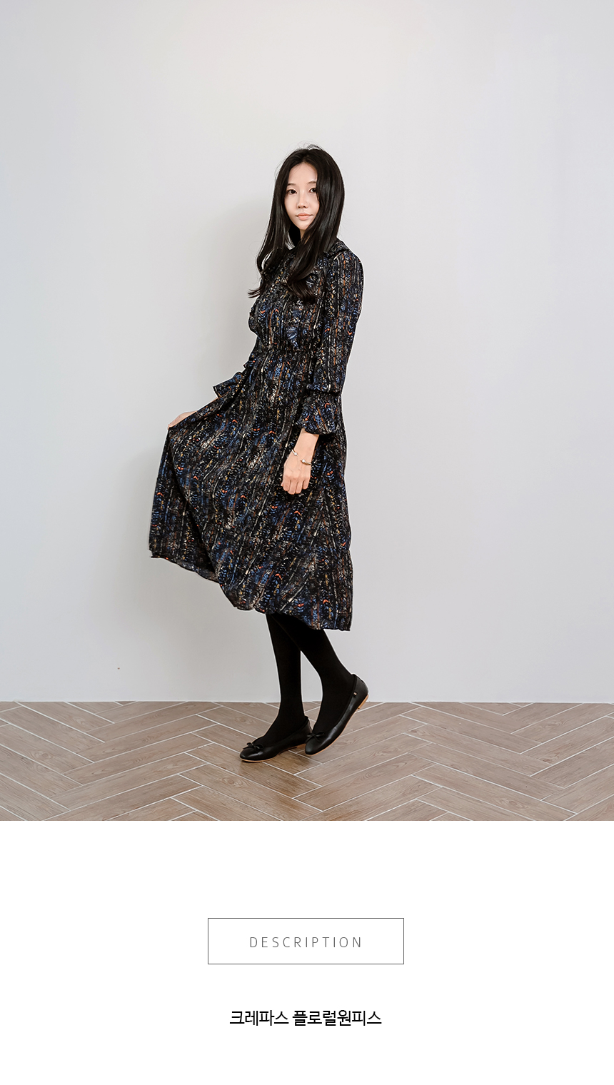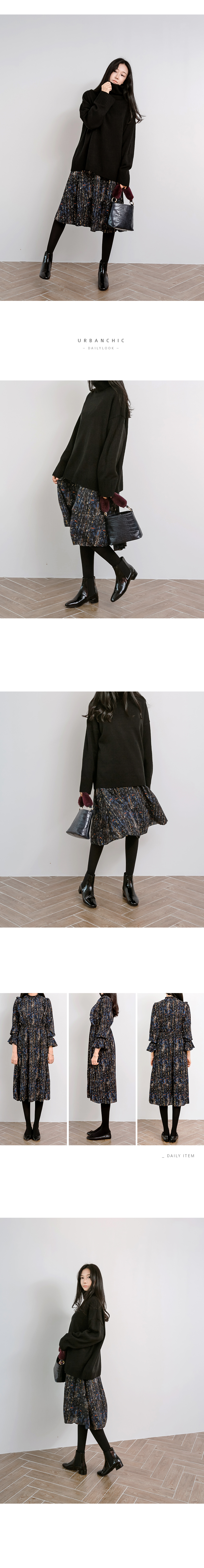 한겨울까지 니트나 자켓 , 라이더 등과 코디하기 좋은 플로럴 원피스예요.