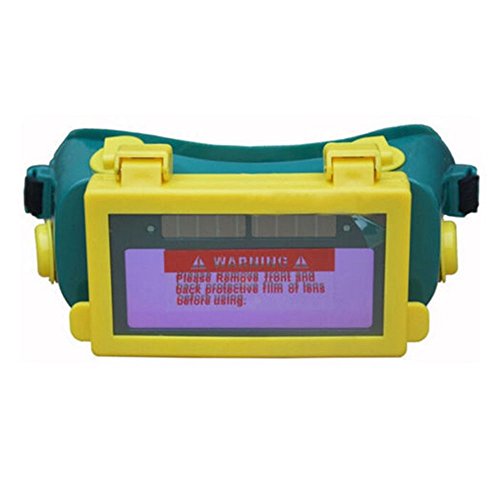 -. Feature : Scratch-resistant glass lens,Lens large size,Wide viewing,For gas cutting brazing soldering, etc. / Solar charge function,automatic ON/OFF,It can shade in welding states and filter out the bad light automatically. / Switching time:Light to Dark:5/10000s(working at room temperature),Power ON/OFF:Fully automatic / Power supply: Solar cells, no battery change required,Operating temperature:-20°C ~ 65°C / Package Included: 1x Glare Shield Welding Mask Goggle,Easy and safety to operate