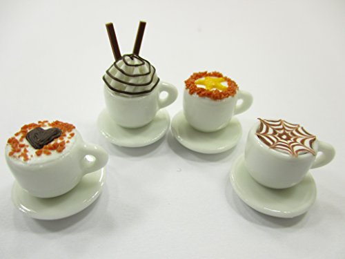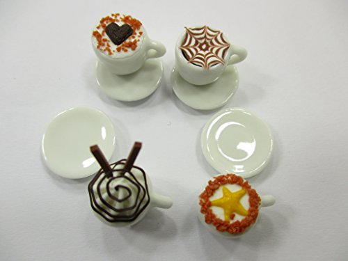 -. Title : Dollhouse Miniatures Drink Beverage Set 4 Mixed Coffee Ceramic Cup Supply 14173