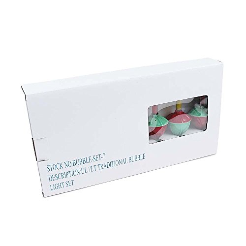 Classic Bubble Lights take on a dazzling new dimension when Novelty Lights adds its flair for magic to a traditional trim-a-tree favorite. Our 7-light set features an array of multi colored lamps that bubble. 7-light set has a 6" lead, 6" End-to-End tail, and 12" spacing between lamps, on green heavy duty wire. Connect up to 5 sets End-to-End. UL Listed for indoor use.