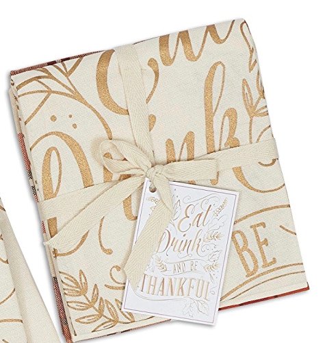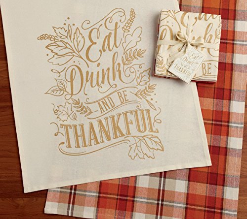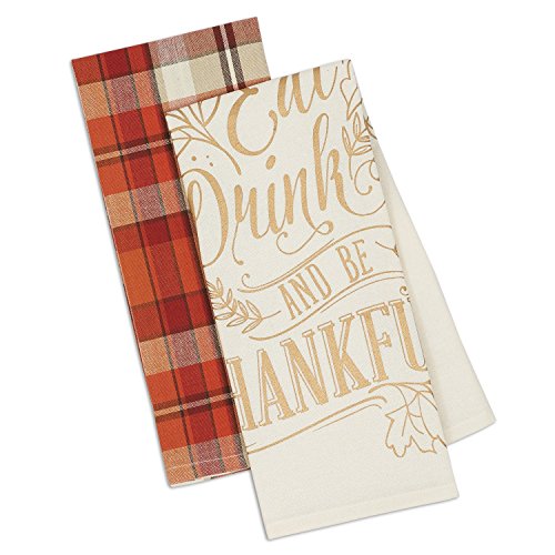 DII Design Imports Thanksgiving Fall Be Thankful Kitchen Dishtowels Set of 2 ~ Eat Drink and Be Thankful Printed ~ Pumpkin Spice Tartan Plaid
