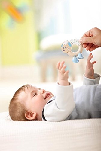 - ah bah baby! Let your little one amuse themselves with this adorable smiling wooden sheep. Its cute dangly feet make a light rattle noise when shaken.