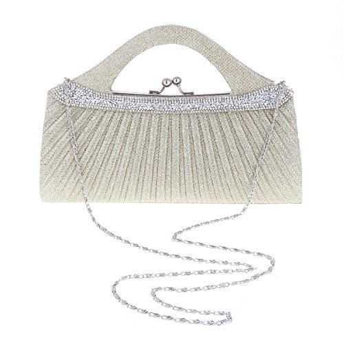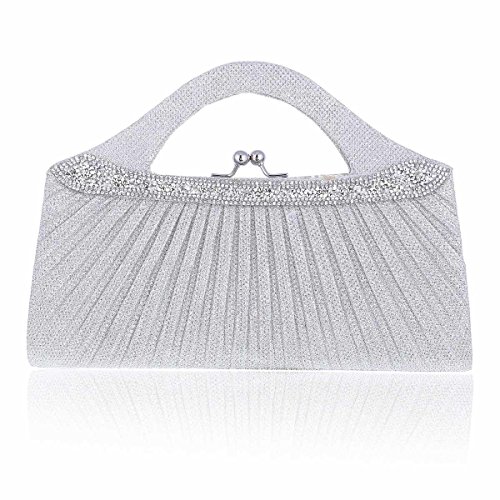-. Title : Damara レディース パーティーバッグ ハンドバッグ ガマ口 プリーツ メッシュ スパンコール付き エレガント ファッション シルバー