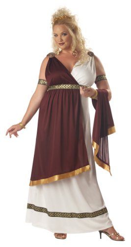 -. Binding : Apparel -. Brand : California Costumes -. Color : Multi -. Department : womens -. Feature : Roman Empress Includes: Dress w/ Attached Drape, 2 Medallions, 2 Armbands. White, Deep Wine, Gold. (Jewelry/Headpiece Not Included). 100% Polyester (Machine Wash Cold, Delicate. Tumble Dry Low. Cool Iron. No Bleach.) / Womens Plus (16-22) / Two Tone Pull Over Roman/Greek Style Dress w/ Black/Gold Ribbon Accent at Waist and Bottom of Front, Back Waist Ties, Shirring at Shoulders, Back and Front Hem of Deep Wine is Edged in Gold, Attached Drape at Shoulder; Black/Gold Armbands w/ Elastic; 2 Roman Medallions w/ Pins Attach at Shoulders -. Genre : Historical -. Label : California Costumes -. Manufacturer : California Costumes -. Model : 1673 -. PackageQuantity : 1 -. ProductGroup : Apparel -. ProductTypeName : ADULT_COSTUME -. Publisher : California Costumes -. Studio : California Costumes -. Title : California Costumes Women's Roman Empress Costume