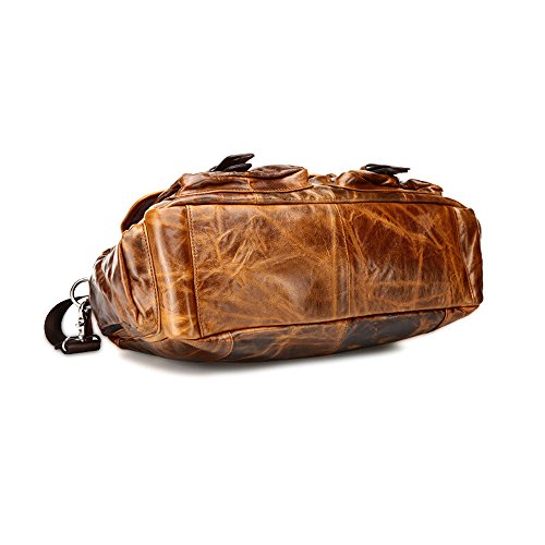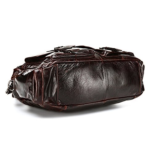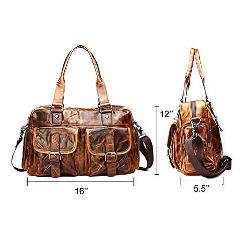 -. Feature : Material: full-grain leather. Size: approx 16" x 12" x 5.5" / Removable and adjustable shoulder strap; bale handles for comfort / One main compartment with 1 zippered inner pocket, 1 mobile phone holder and 1 document holder; 2 buckled front pockets, 2 zippered side pockets and 1 zippered back pocket / Design for business, travel, leisure and shopping; perfect for holding mobile phone, keys, umbrella, iPad and other belongings / Package includes: 1 SEALINF bag with 1 adjustable shoulder strap