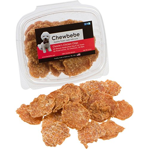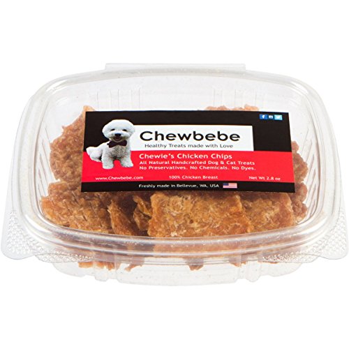 -. Binding : Misc. -. Brand : Chewbebe -. EAN : 0861659000212 -. Feature : Dogs Dig These Healthy Chicken Jerky Treats / Chewie's Chicken-Chips Snacks are Good for Training / All treats are Hand Made in USA / NO Preservatives NO Chemicals NO Added - Color NO Carrageenan NO Salt NO Sugar / Gluten-Free and Grain-Free -. Label : Chewbebe All Natural Freshly made Treats -. LegalDisclaimer : Feeding Guidelines: Chewbebe Dog Treats is intended for intermittent or supplemental feeding only. For smaller dogs and cats, you can cut in smaller pieces. For Maximum Freshness: Store in cool dry place or refrigerator once open since they do not contain any preservatives. Disclaimer: The statements made here have not been approved by the Food and Drug Administration. These statements are not intended to diagnose, treat or cure or prevent any disease. This notice is required by the Federal Food, Drug and Cosmetic Act. As with any treat and food, supervision is advised. -. Manufacturer : Chewbebe All Natural Freshly made Treats -. Model : Chicken -. MPN : Chicken -. PackageQuantity : 10 -. PartNumber : Chicken -. ProductGroup : Pet Products -. ProductTypeName : PET_SUPPLIES -. Publisher : Chewbebe All Natural Freshly made Treats -. Size : 2.8 OZ -. Studio : Chewbebe All Natural Freshly made Treats -. Title : Chewbebe Chewie's All Natural Chicken-Chip Dog Treats 100% Human-Grade Dehydrated Chicken Breast -. UPC : 861659000212