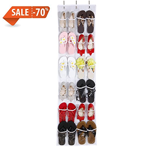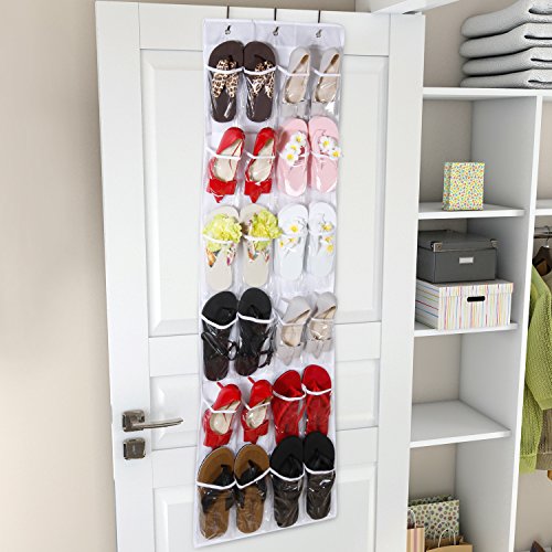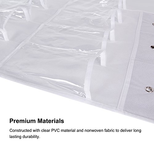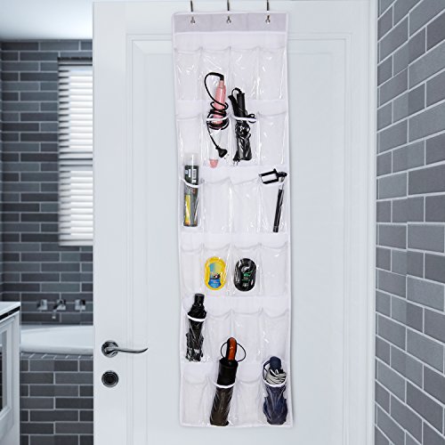Description: The hanging organizer is constructed of clear PVC material and nonwoven fabric to provide maximum strength and durability. The space-saving organizer utilizes vertical storage space to keep your room clean and clutter-free. It features 24 pockets and is perfect for storing belts, scarves, towels, umbrellas, keys, toys, tools, and shoes. The clear pocket design makes finding and accessing the stored items a breeze. The hanging organizer can be easily hung over closet doors or any interior doors up to 1.6"-1.7" in thickness.