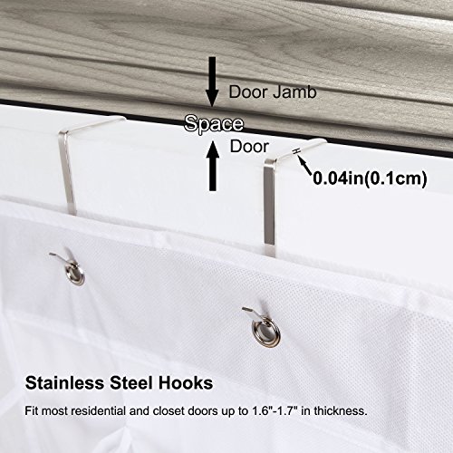 3-HOOK: Equipped with 3 stainless steel hooks that fits most residential and closet doors up to 1.6"-1.7" in thickness.