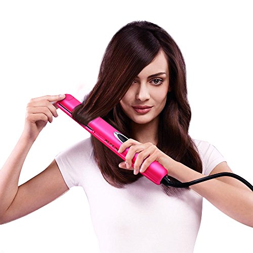 - 【Never Pull Your Hair 】-- 3D floating plates never pull your hair, 1 inch plate width wide enough for any hair length, a yet narrow enough for bangs,and allows you 2 in 1(flat iron & curling iron)
