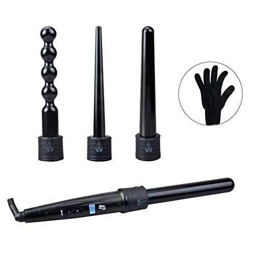 Hair Wand Curler, Zealite 4 in 1 Curling Iron Set LCD Display with 4 Interchangeable Curling Wand Ceramic Barrels and Heat Resistant Glove