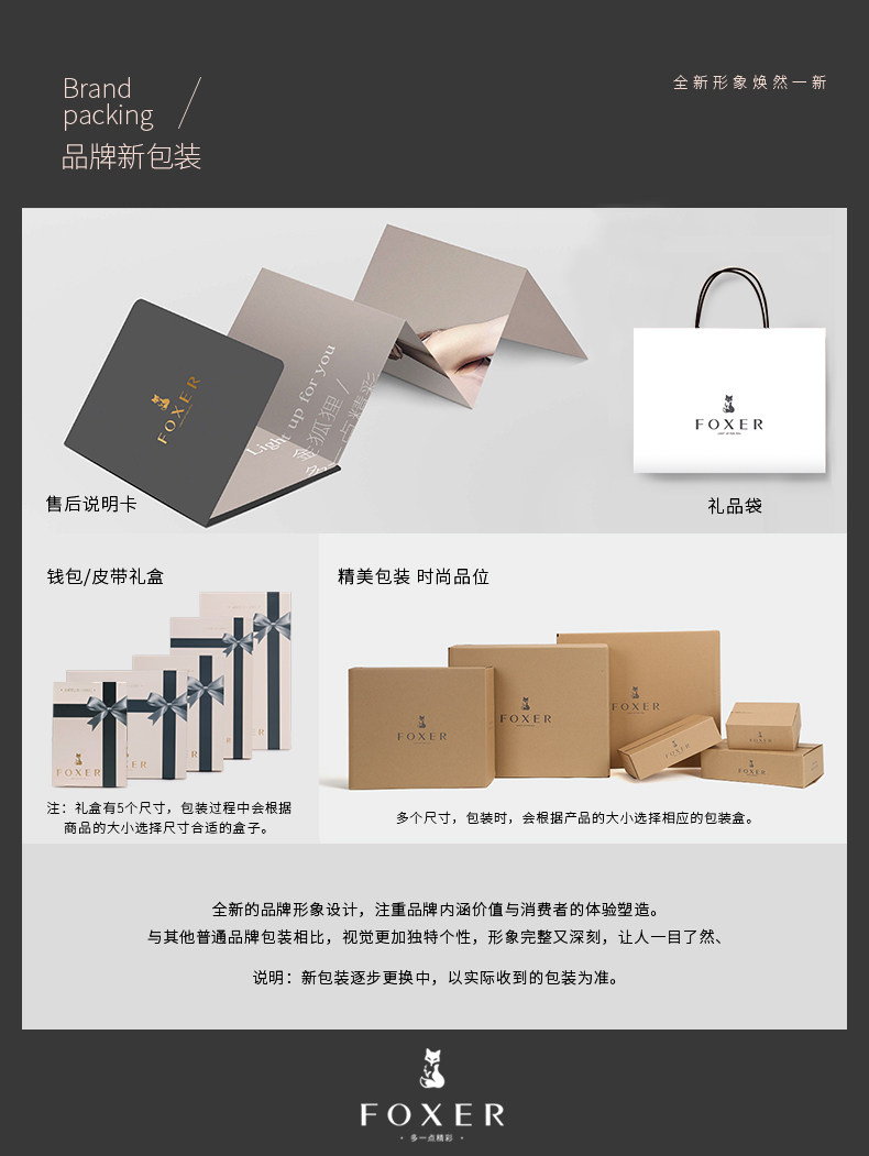 金狐狸品牌下的产品,根据国标要求已经认证企业执行标准:【时尚女包:Q/GZZK 01—2016】【时尚皮带:Q/GZZK 02—2016】【时尚票夹:Q/GZZK 03—2016】根据以上标准检测,确保专业化产品质量。