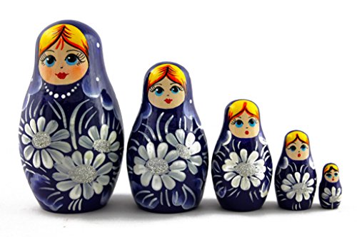 -. Title : Matryoshka Matreska Babuska Russian Nesting Wooden Doll Blue Dress Daisies Matrioska 5 Pcs Stacking Hand Painting Beautiful Nested Craft Matriosjka Matrioska Matreshka Matrjoska Matroeska