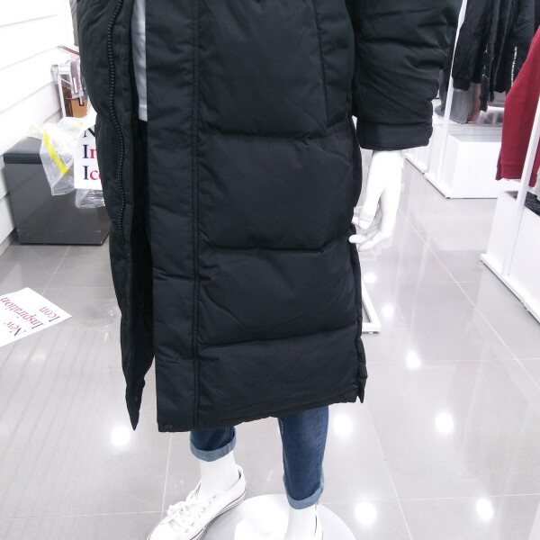 2018년 겨울 유행 아이템~ 롱 구스패딩~남녀공용. 구스100(깃털30ㆍ솜털70)옆 똑딱이로 활동성이 편리함.이중소매로 따뜻함.후드탈부착