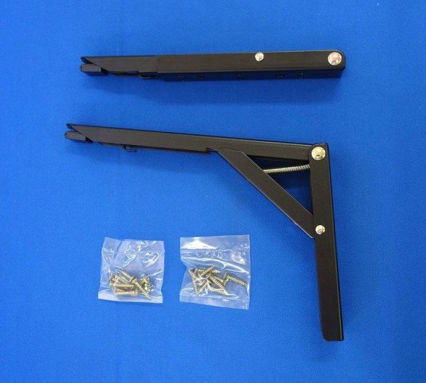ワンタッチでお手軽開閉!たたんだ時の金具の寸法はたったの14mmだから、すっきり収納。ワンタッチだから頻繁に開閉させたい、バタフライテーブルにも最適です。すっきり収納だから、たたんだ時は更にコンパクト。デザインと堅牢性・機能性を兼ね備えた棚受金具です。 |