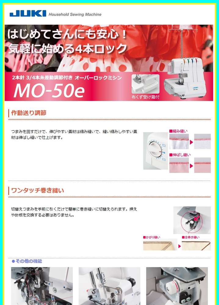 ●作動送り調節:つまみを回すだけで、伸びやすい素材は縮み縫いで、縫い縮みしやすい素材は伸ばし縫いで仕上げます。