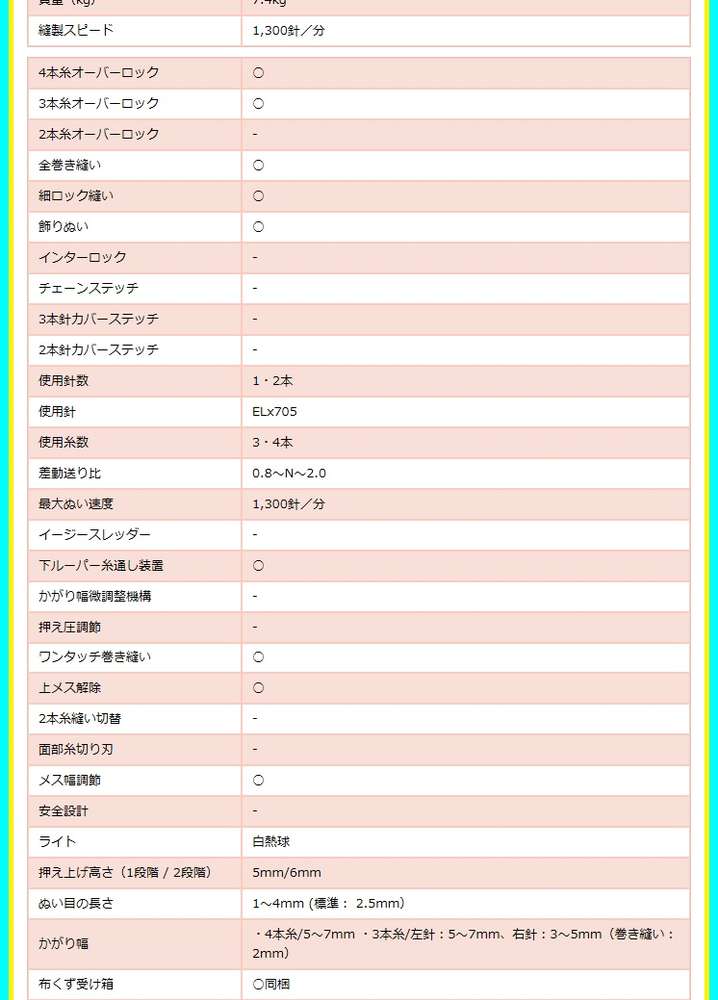 ●かがり幅:4本糸/5~7mm・3本糸/左針:5~7mm、右針:3~5mm(巻き縫い:2mm)