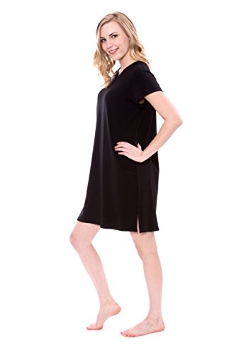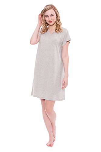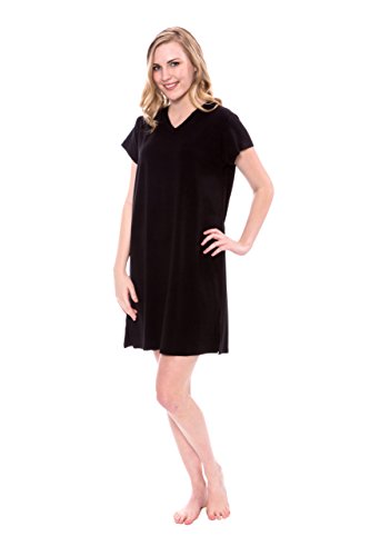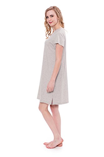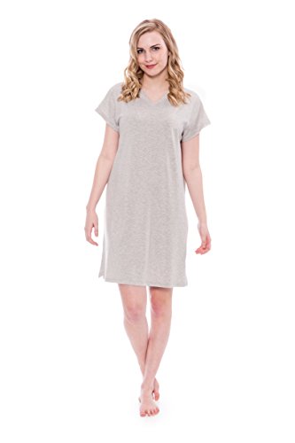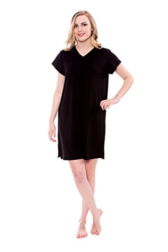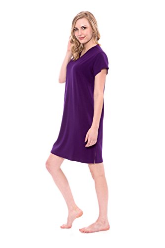 -. Feature : Lexxie - Ladies tee dress is exclusively fulfilled by Amazon. Buy ONLY when indicated as being shipped by Amazon / Short sleeve, V-neck sleep shirt. Side slits at hem. Tagless. Relaxed fit. Valentines Present Ideas for Women / Fabric's superior temperature regulating properties keep the body warm in winter and cool in summer. Naturally hypoallergenic, bamboo fiber is especially suitable for those with sensitive skin or allergies / Bamboo plant is organically sustainable, biodegradable, grows naturally, and has a very low water footP.R.Int / Machine wash in cold water. Remove promptly from dryer to prevent wrinkles. Imported