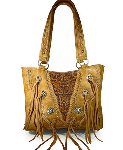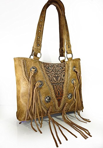 Trinity Ranch Concealed Gun Carry, Tooled Leather Western Tote - Brown