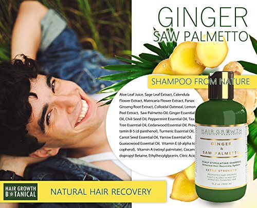 Includes the strongest known botanical hair-loss fighting bio-active components contained in Saw Palmetto Oil and Capsaicin, derived from Cayenne (Chili Seed), and Zingiberene, which can contribute up to 30% of the essential oil in Ginger rhizomes. 100% Money Back Guarantee - Natural Hair growth shampoo for men and women.Our Exclusive Herbaceutical Formula integrates the strongest known botanical hair-loss fighting and bio-active compounds which are derived from Natural Essential Oils.