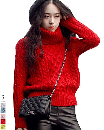 -. Title : (イノセンティア) Innocentia やわらか 杢糸 ざっくり ケーブル 編み タートル ニット セーター レディース 冬 ブルー グレー 赤 レッド ゆったり フリー サイズ ローゲージ 大人 かわいい