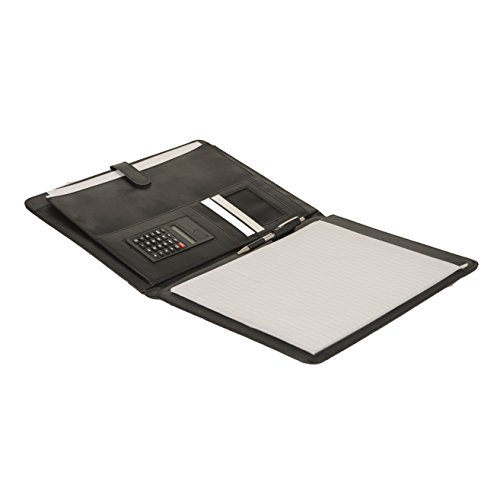 Executive Office Solutions Professional Business Padfolio Portfolio Organizer w/Calculator - Light Weight Black Synthetic Leather