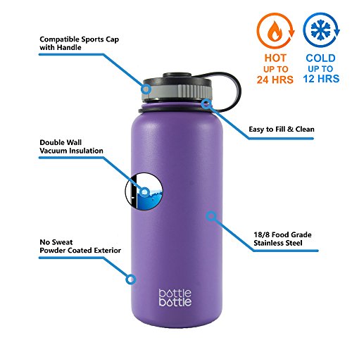You Deserves The Best Drinking Experience.Vacuum Insulation TechnologyYour beverage will stay cold up to 24 hours and hot up to 12 hours. All bottlebottle drinkware are made of double walled stainless steel with insulated copper layer between the walls. It prevents outside temperature from affecting the inside and condensation from forming on the bottle. Even filled with ice or boiling water, the bottle will never sweat and always be dry to touch.