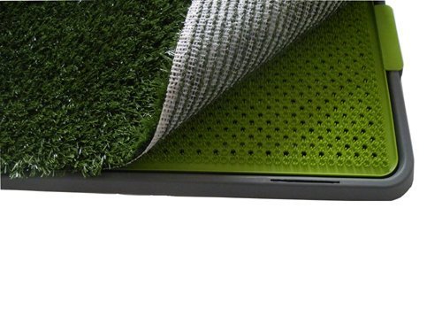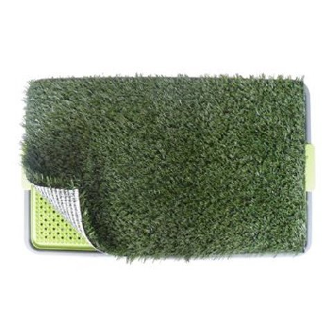 -. Feature : Ideal for housebreaking your pet. / Portable, easy to clean, just rinse with soapy water. / Great for indoors, porches, patios, and balconies. / Non-toxic mat consists of 3 layers to keep your home clean and odor-free. / Indoor pet potty made of a synthetic surface that's similar to grass.