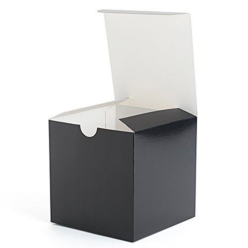 - Black GIFT BOXES - Our high-quality recyclable cardboard gift boxes have a charming rustic look and a natural black finish. At 4x4x4 inches, they are the perfect size and shape for small gifts and homemade cupcakes, for using as wedding favor boxes, or for storing mini ornaments! Boxes only - no other accessories included.