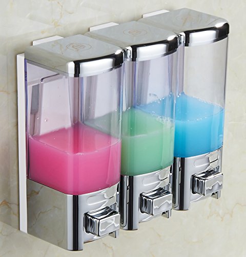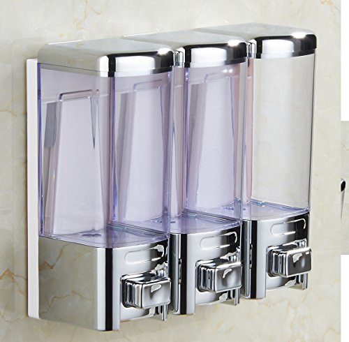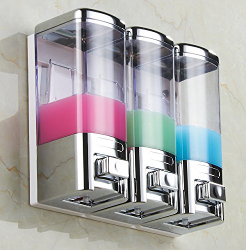 Luxury & Chrome Shampoo Dispenser Pump,Shower Gel,Conditioner,Lotion Dispenser Pump,Wall Mounted 3 Chamber,16X3=48-Ounces,Two Options for installation,GBW-8503