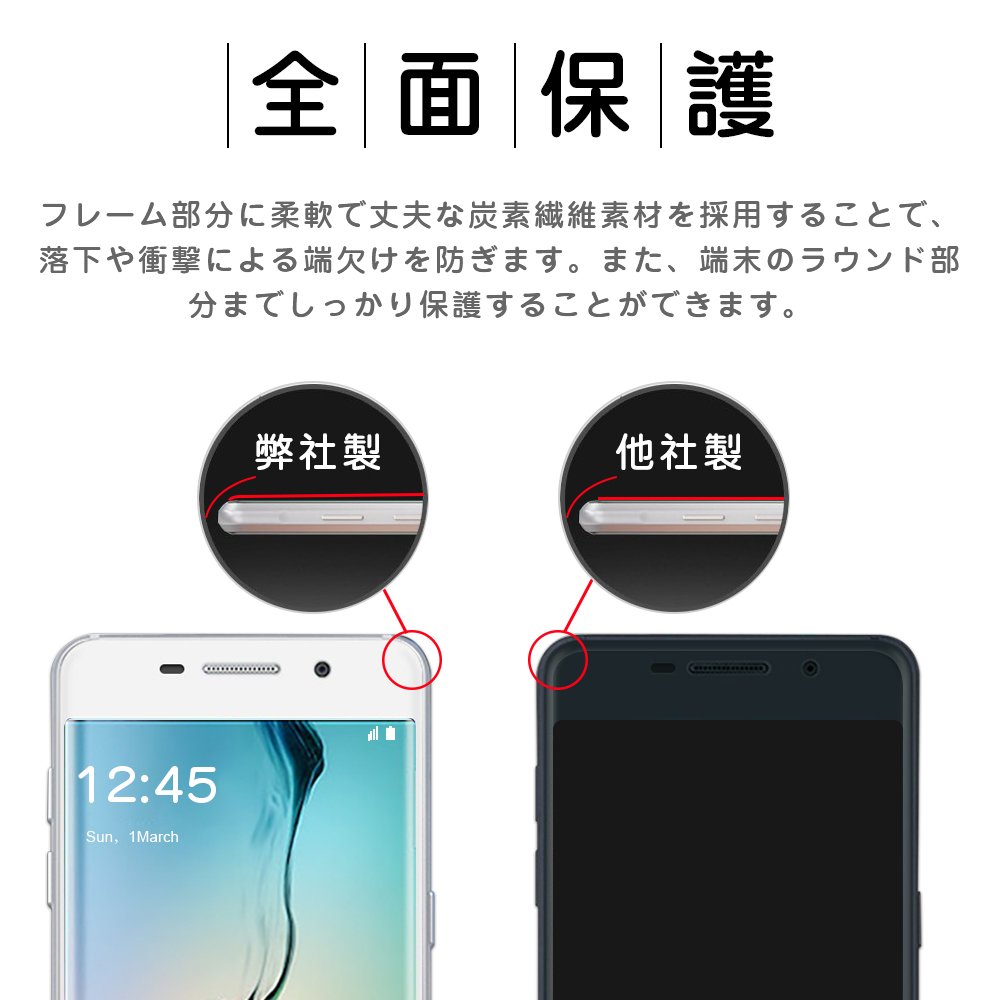 Since it does not cover the curved part of Galaxy, it may crack or be scratched, fingers touch the curved surface of the glass and the operability is poor.