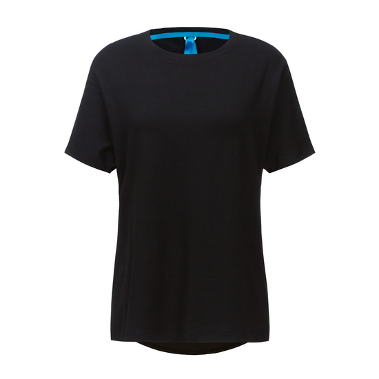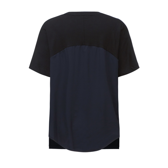 - 소프트 터치의 저지와 우븐 소재를 믹스한 ego 여성 하모니 플레어 반팔티셔츠.
