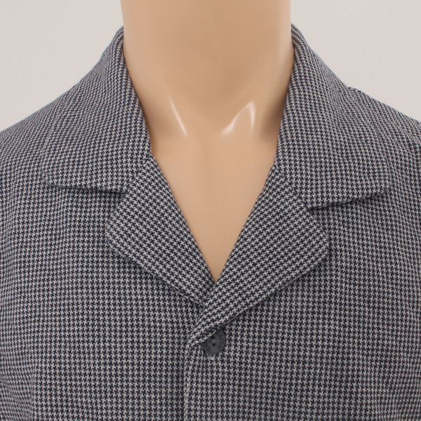 은은한 네이비 쟈카드 무늬가 세련되며 클래한 기본 스타일로 허리는 인밴드 고무줄로 편안한 남성 면 파자마.