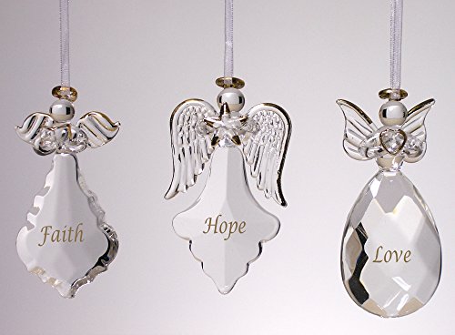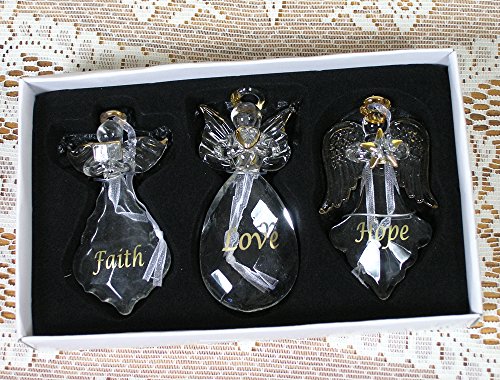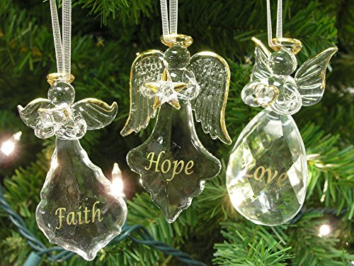 Faith Hope Love Angel Ornaments - Set of 3 - FAITH HOPE LOVE Written on Each Ornament in Gold
