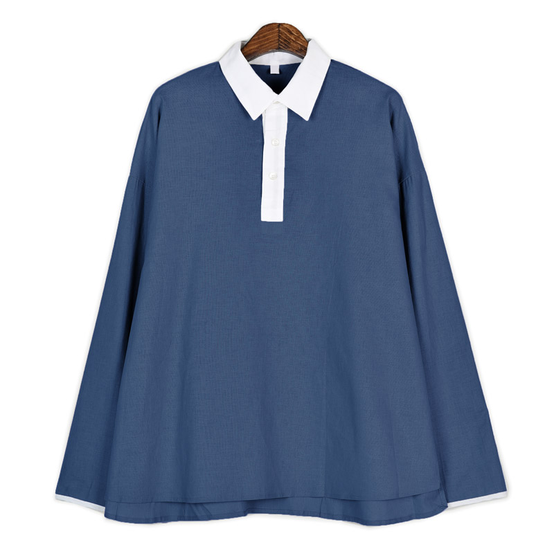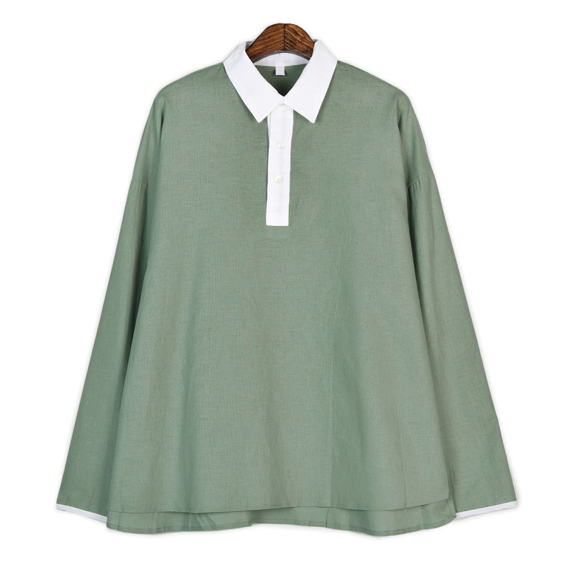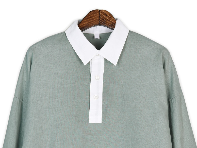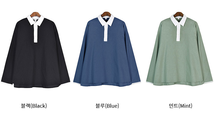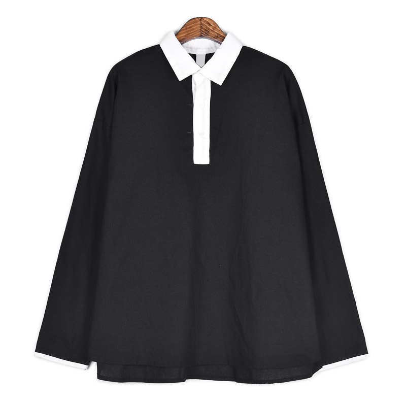 시어드 린넨 배색 카라티