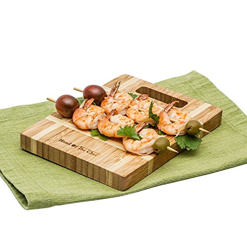Hand Of The Chef - Thick Bamboo Cutting Boards - Set of 3 - Custom Made Bamboo Carving Boards With Handle - Wood Bamboo Chopping Boards - Serving Platter - Unique Design