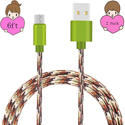 Sogola Micro USB Cable, Nylon Braid High Speed 2.0 USB to Micro USB Charging Cables Android Fast Charger Cord for Samsung Galaxy S7 Edge/S6/S5/S4,Note 5/4,HTC,LG,Tablet (2PCS 6FT GREEN)