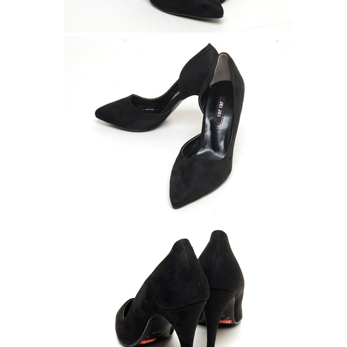 商品名:パンプス ポインテッドトゥ サイドオープン ヒール スエード調 婦人靴 女性用