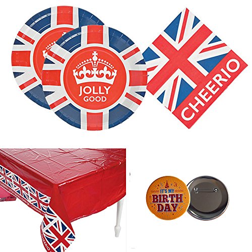British Party Supplies for 16 guests, plates, napkins, tablecover
