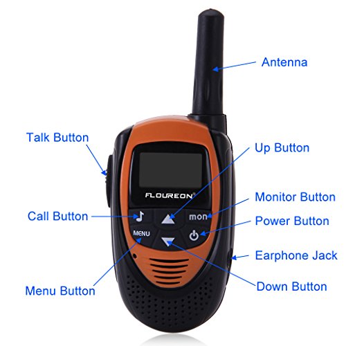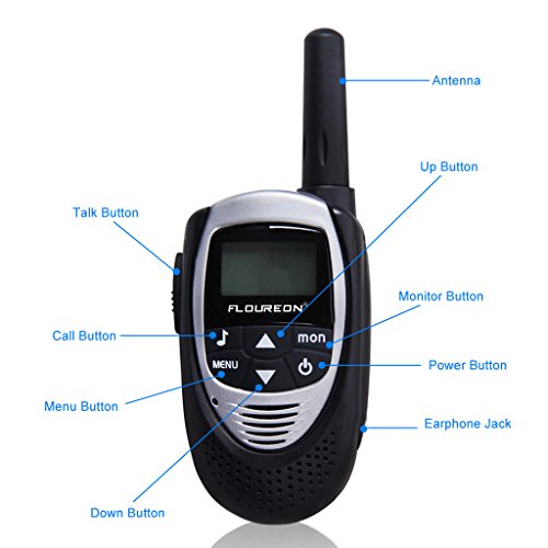-. Binding : Wireless Phone Accessory -. Brand : Floureon -. Feature : 22 Channel PMR system auto scan function / Generous range up to 3km (MAX 5km open field) / Find an open channel fast with auto channel scan / LCD backlit display, battery status indicator / Great for supermarkets, shopping centres, festivals, Hiking, Hunting and any outdoor activities -. Label : FLOUREON -. Manufacturer : FLOUREON -. PackageQuantity : 1 -. ProductGroup : Wireless -. ProductTypeName : WIRELESS_ACCESSORY -. Publisher : FLOUREON -. Studio : FLOUREON -. Title : FLOUREON 4 Packs of 22-Channel FRS/GMRS Two-Way Radios 3000M Range Walkie Talkies for Outdoor Activities