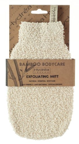 Hydrea brings you a luxuriously sumptuous mitt woven from natural bamboo fibre, a perfect texture for gently exfoliating the whole body and boosting circulation for silky soft skin. The naturally antibacterial properties of bamboo ensures clear, healthy and glowing skin. Machine washable, lightweight and durable - a must have natural accessory for a wonderful pampering experience. Soft / Medium Texture. Naturally Anti-Bacterial & Anti-Fungal, Odour resistant, Hypo-Allergenic, Super Soft, Super Absorbent, Temperature Regulating, Breathable, Lightweight, Strong and Durable, Super Soft & Luxurious & Eco-friendly: organic and sustainable. Bamboo is thrives naturally in many regions of the world. It grows organically without the need for chemicals due to its naturally pest resistant qualities. Bamboo is a fast growing grass, which produces more oxygen and absorbs more carbon dioxide than an equivalent stand of trees, making it an excellent sustainable and eco-friendly resource. When harvested the extensive root system is left intact allowing for rapid self- regeneration while helping to prevent soil erosion. Bamboo is 100% biodegradable. Composition: 60% Bamboo, 40% Cotton.Feature