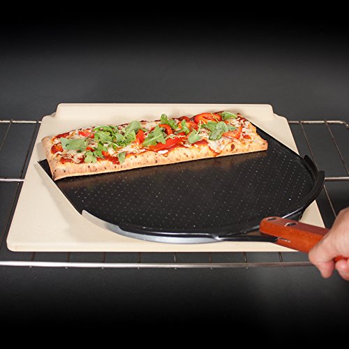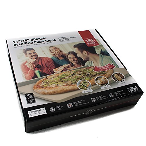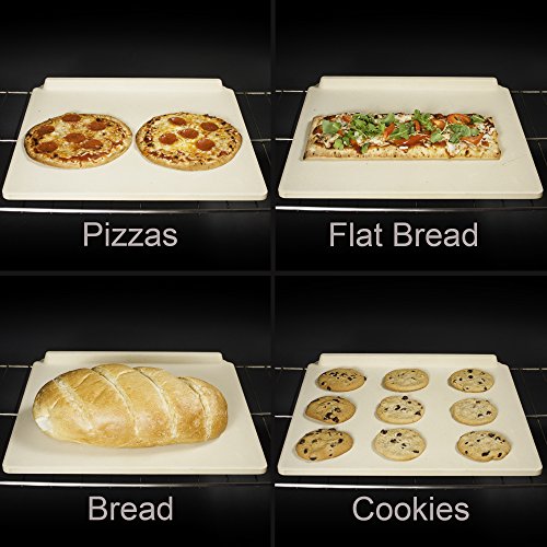 The Ultimate Rectangular Pizza Stone, 14" x 16", for Cooking & Baking on Oven & Grill. Exclusive ThermaShock Protection & Core Convection Technology for a Crunchy Crust. Patented No-Spill Stopper