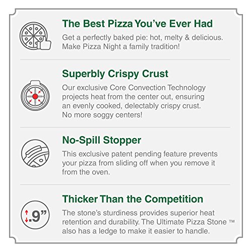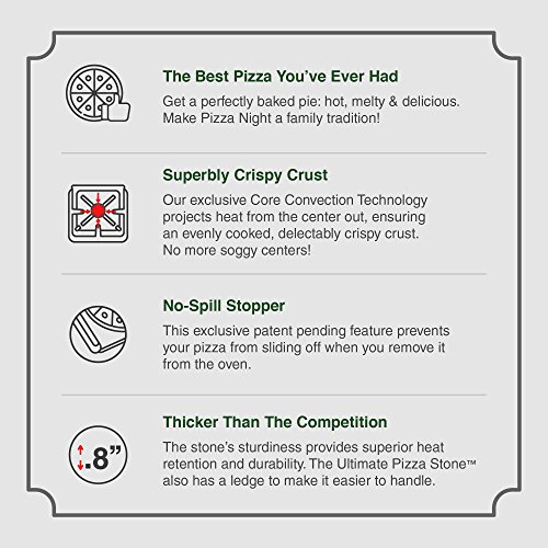 The Ultimate 16" Round Pizza / Bread Stone for Cooking & Baking on Oven & Grill. Exclusive ThermaShock Protection & Core Convection Technology for the Perfect Crispy Crust. Patented No-Spill Stopper