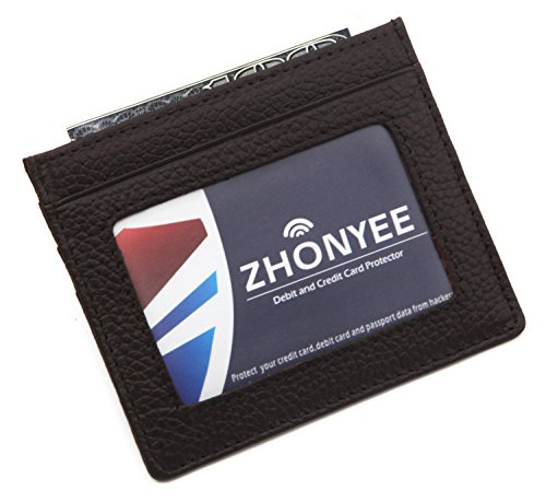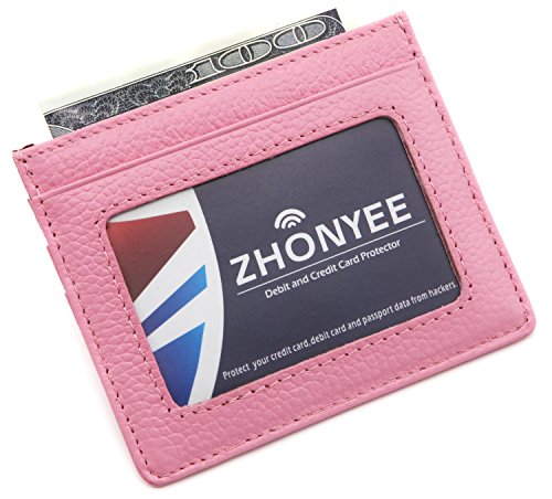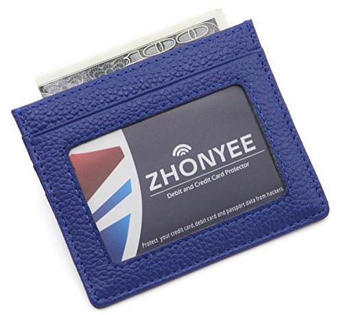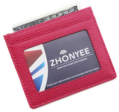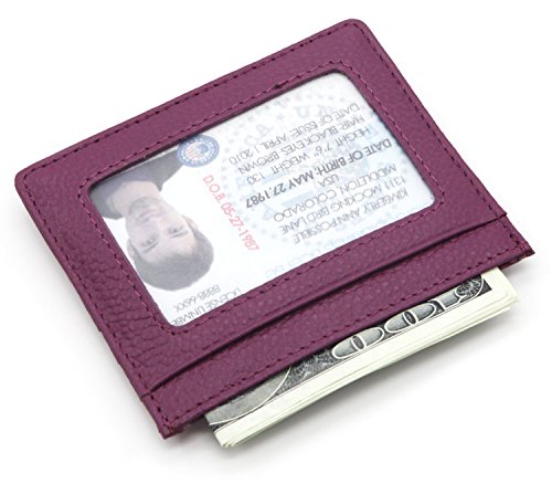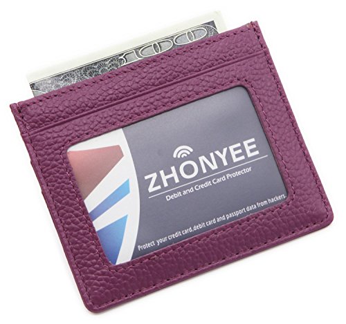 ZHONYEE Genuine Leather RFID Blocking Thin Minimalist Front Pocket Wallets Card Holder With ID Window - Purple