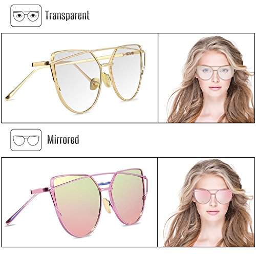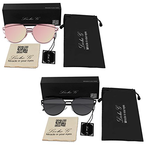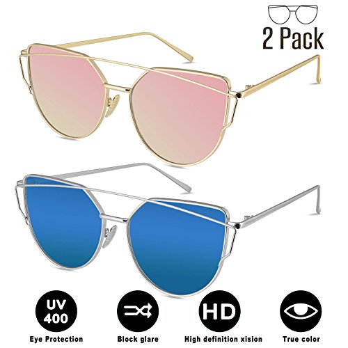 -. Title : Sunglasses for Women, LIVHO G 2 Pack Cat Eye Mirrored Flat Lenses Metal Frame Sunglasses UV400