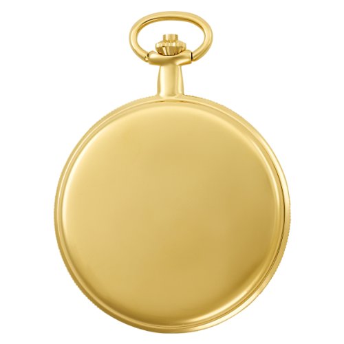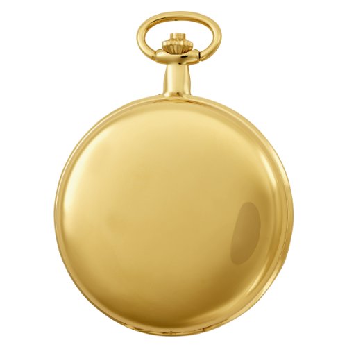 -. Feature : 14k gold-plated brass 48mm hunter case with a matching curb chain / White dial with date display / Swiss parts quartz movement / Deluxe gift box