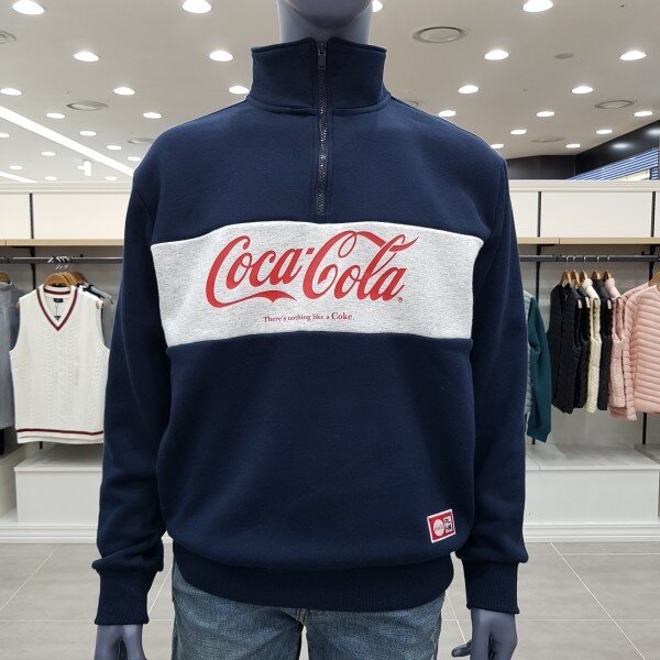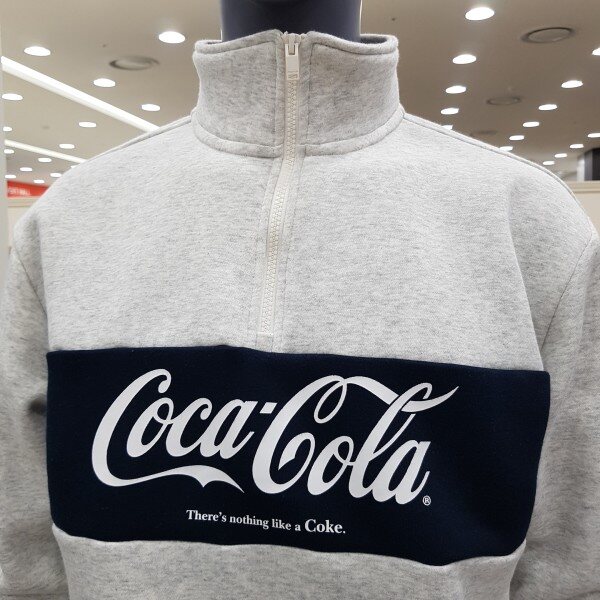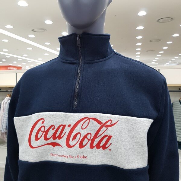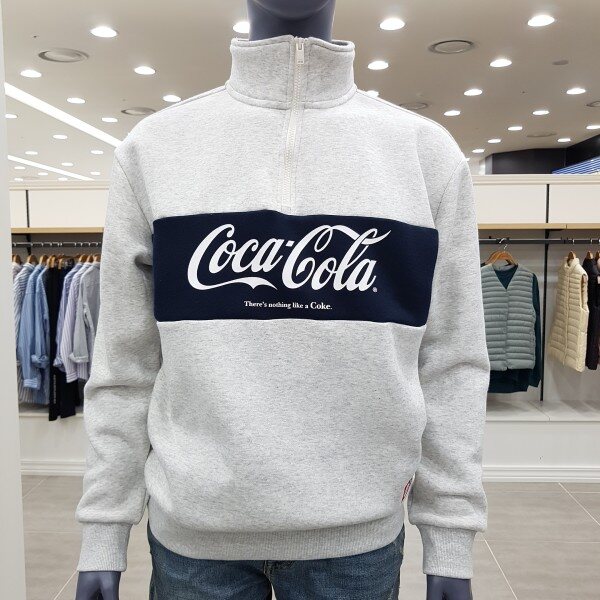 코카콜라 콜라보 반집업 기모 맨투맨 티셔츠 기모가 있어 한겨울까지 따뜻하게 입을수 있는 두께감입니다